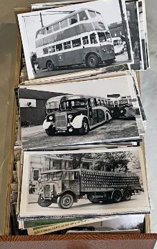 From the David Harvey Photographic Archive: a box of 700+ b&w, postcard-size PHOTOGRAPHS of Crossley Motors vehicles, mostly post-war single-deck buses & coaches plus some trolleybuses, cars, lorries and military. Mostly taken in the 1950s/60s, nearly all have captions on reverse. Very good quality, in-service shots. [700+]